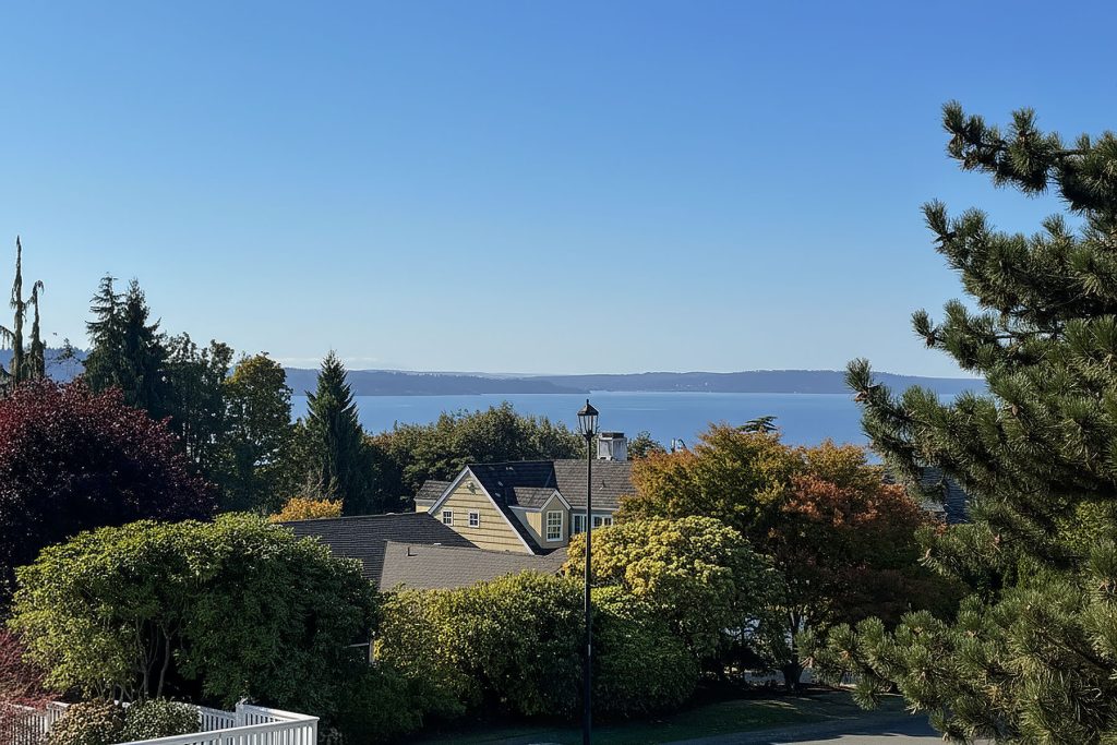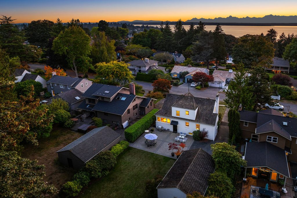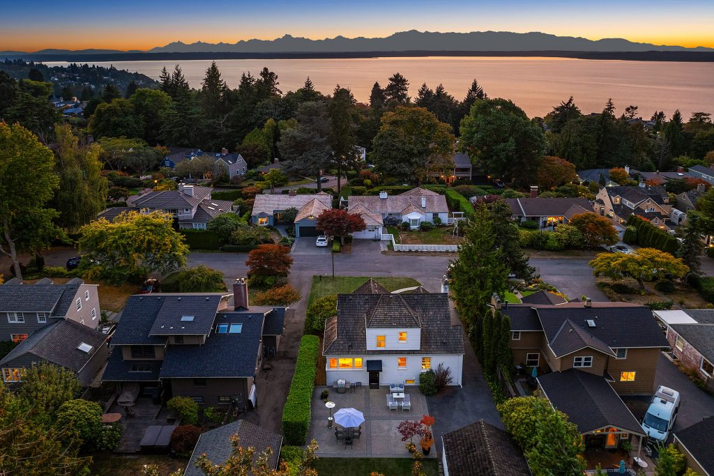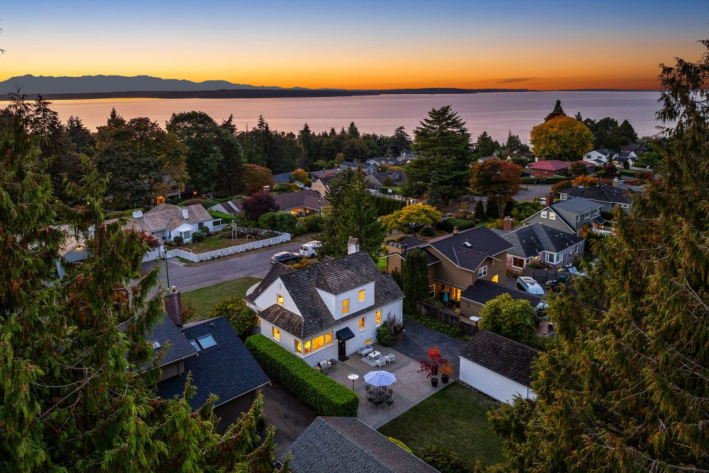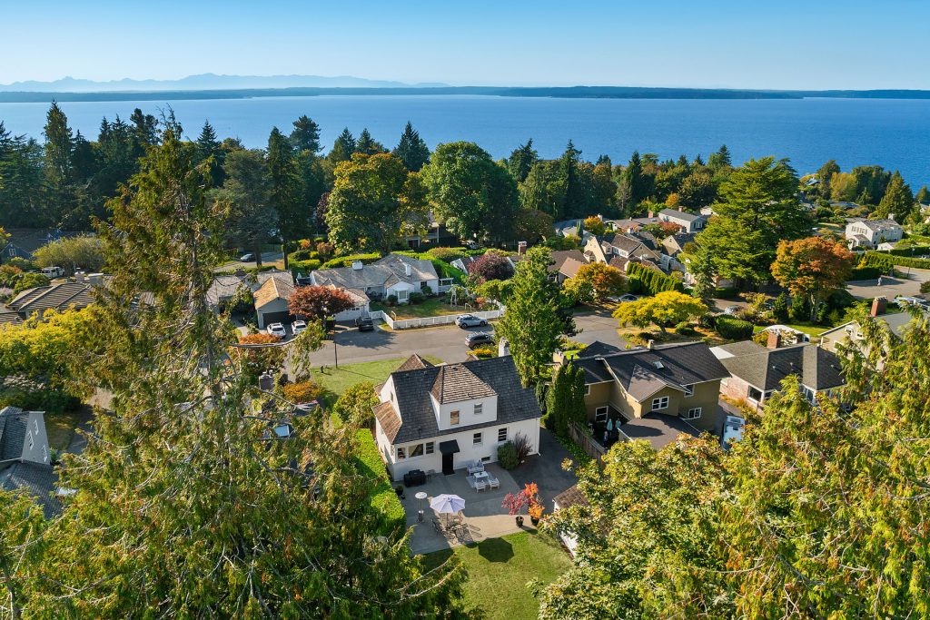 Timeless charm meets unbeatable amenities in this meticulously maintained 1940 classic, offered for the first time in 25 years. Situated on a street-to-street lot with westerly territorial views and glimpses of Puget Sound and the Olympics, this home offers a traditional layout with thoughtful updates. The remodeled kitchen with eating nook complements a sun-filled living room anchored by the fireplace—perfect for entertaining. Three bedrooms span the main and upper floors, with a guest room, ¾ bath, family room, laundry, and generous storage below. Outside, enjoy a 580-sf two-car garage, garden shed, and backyard ideal for play or gardening. Community perks: clubhouse, pool, tennis/pickleball courts, and an enviable private beach park.