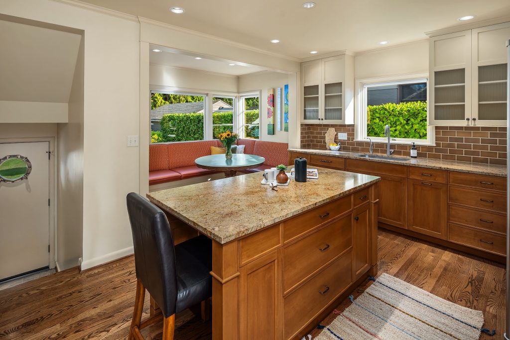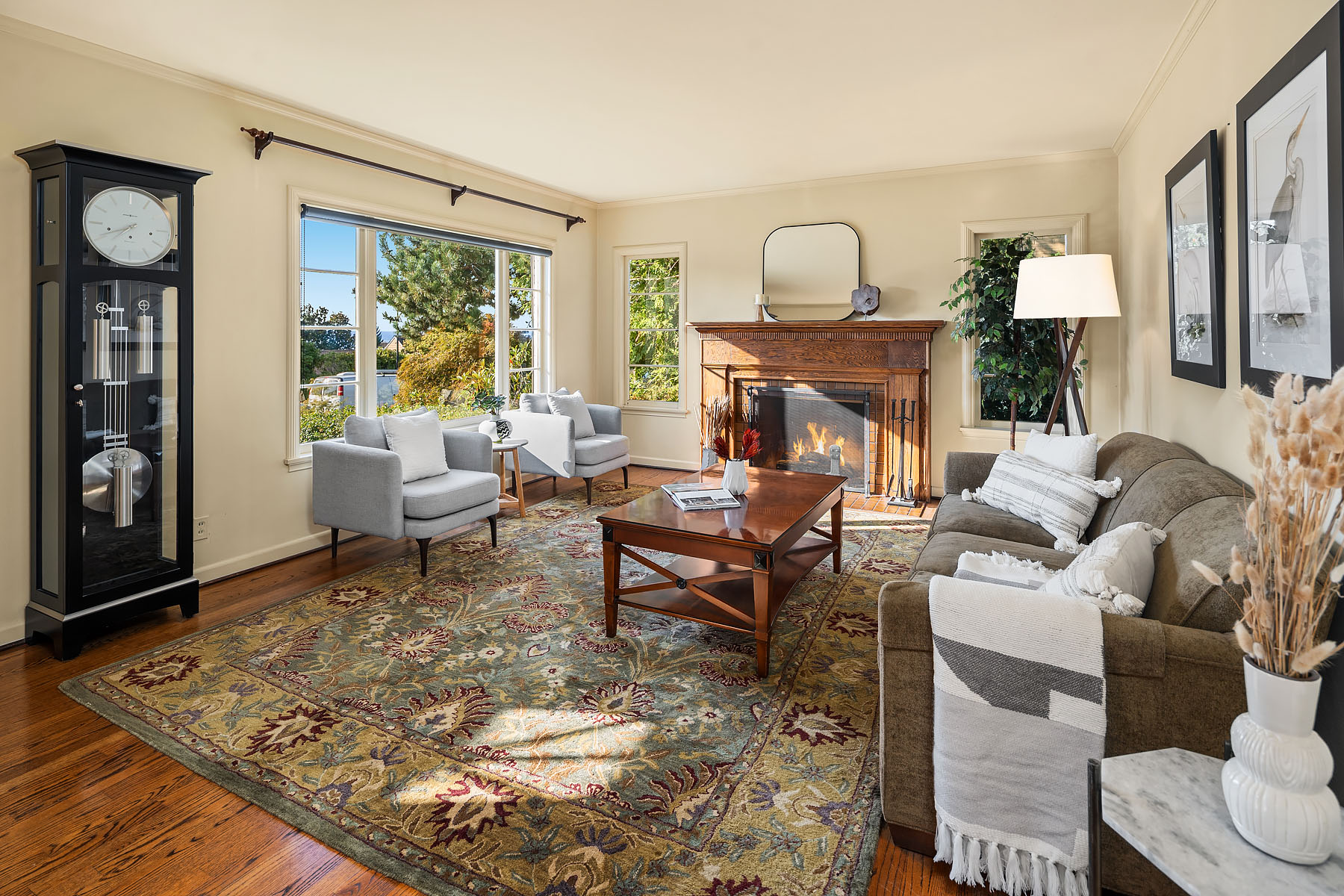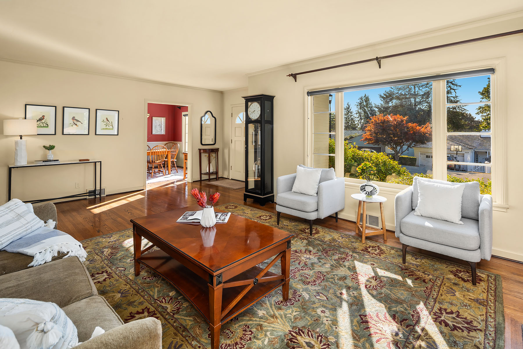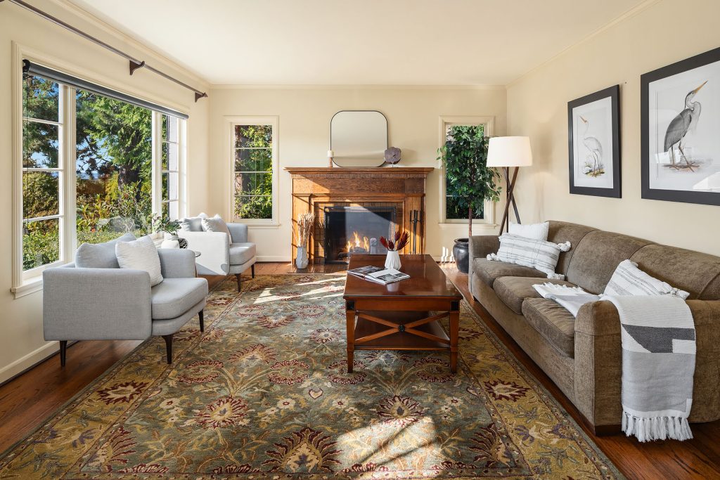 Timeless charm meets unbeatable amenities in this meticulously maintained 1940 classic, offered for the first time in 25 years. Situated on a street-to-street lot with westerly territorial views and glimpses of Puget Sound and the Olympics, this home offers a traditional layout with thoughtful updates. The remodeled kitchen with eating nook complements a sun-filled living room anchored by the fireplace—perfect for entertaining. Three bedrooms span the main and upper floors, with a guest room, ¾ bath, family room, laundry, and generous storage below. Outside, enjoy a 580-sf two-car garage, garden shed, and backyard ideal for play or gardening. Community perks: clubhouse, pool, tennis/pickleball courts, and an enviable private beach park.
