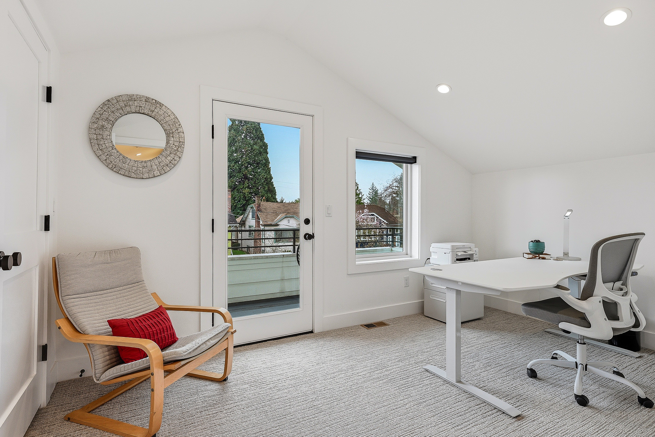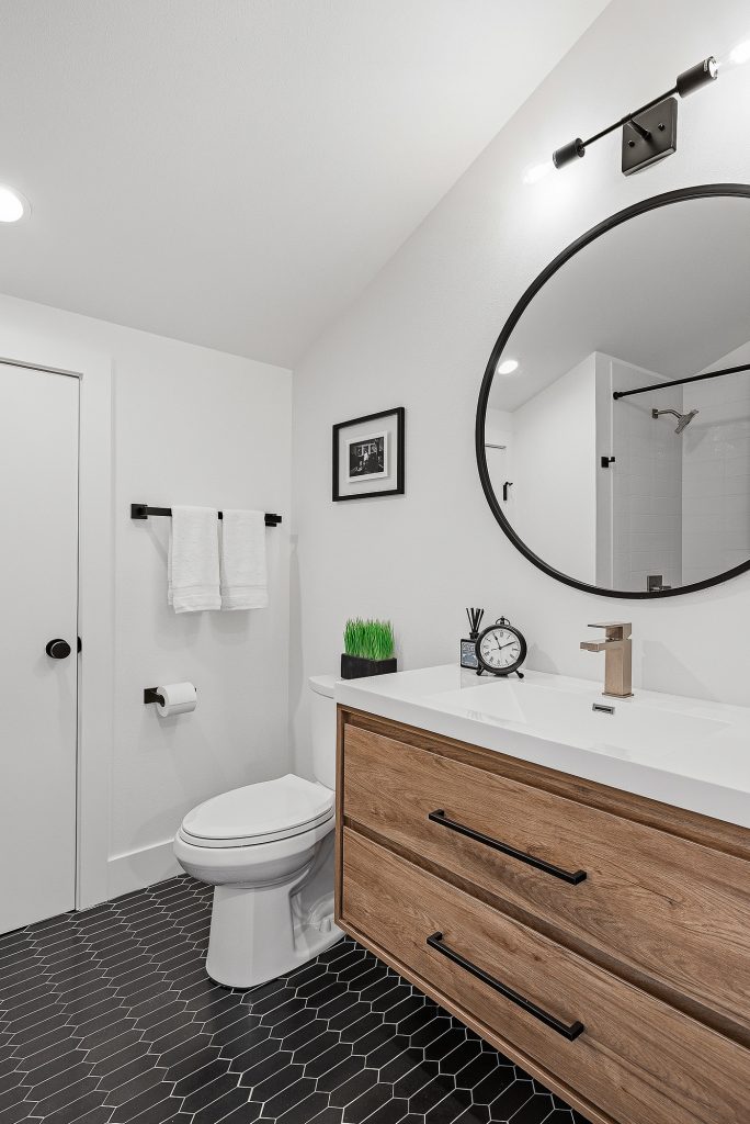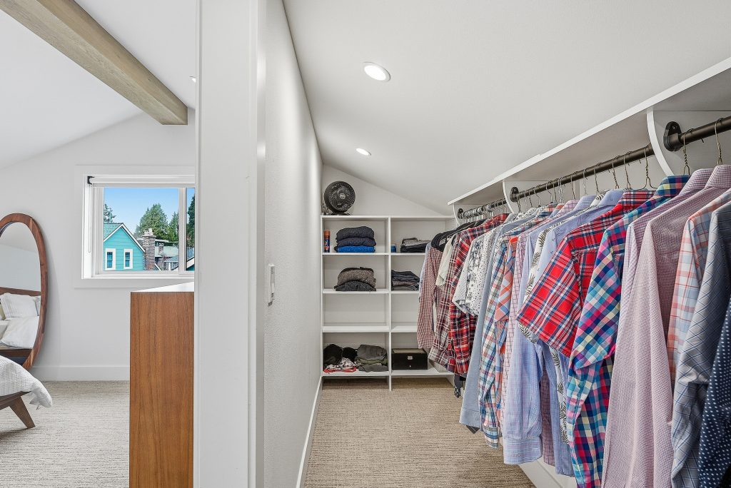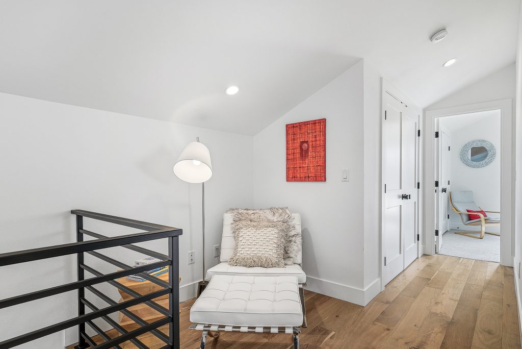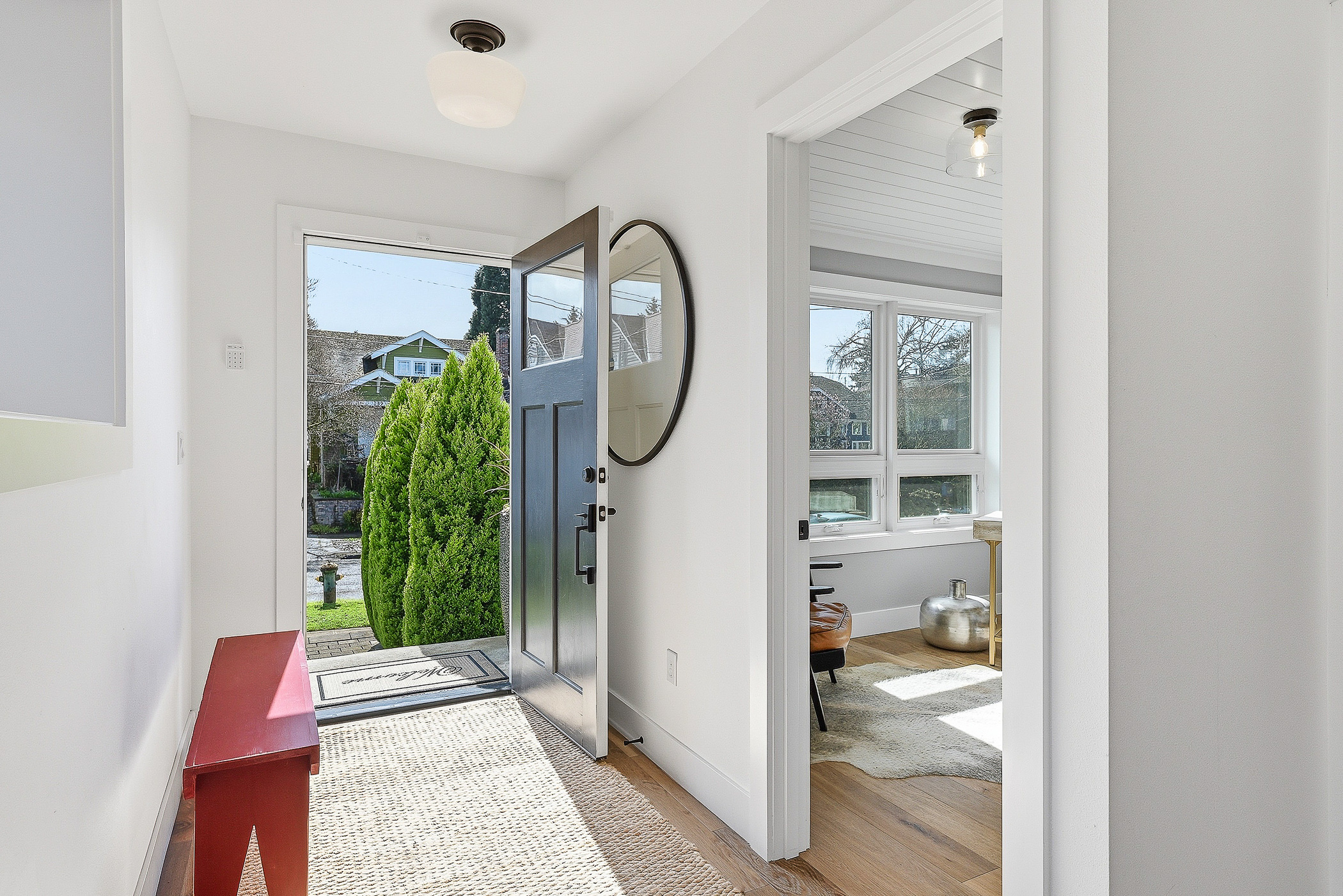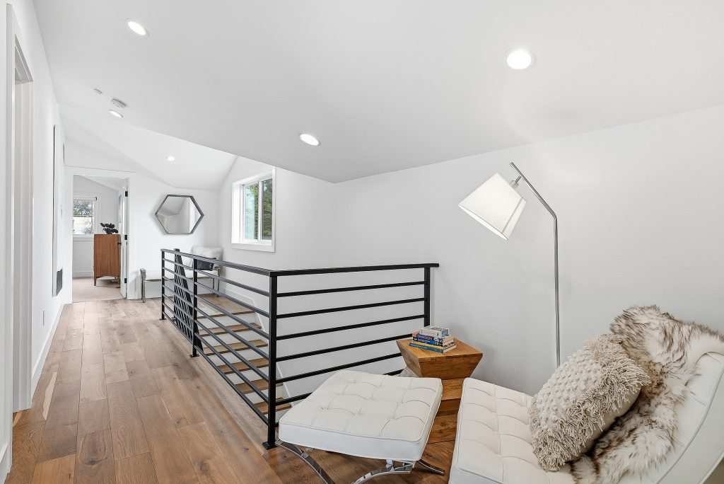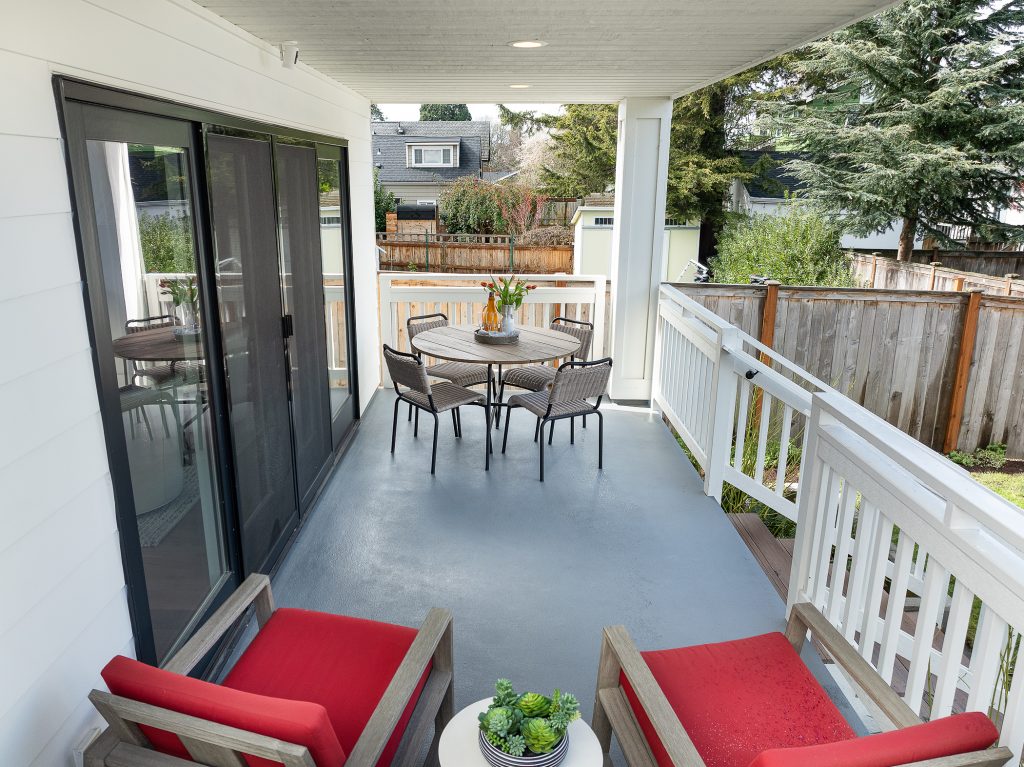 This thoughtfully designed home built in 2020 lives large on its urban lot, a compelling opportunity in this sought-after neighborhood. Clean architectural lines combined with timeless, high-quality materials delivers an open layout that is both functional and bright. The kitchen and adjoining living spaces form the natural heart of the home. A generous island with breakfast bar, spacious dining area, and gas fireplace anchor the great room living area, while the inviting back porch extends the space for outdoor meals and relaxed evenings. A refined black-and-white palette is warmed by white oak flooring, staircase, and a striking white oak–wrapped vent hood for the 5-burner Bertazzoni gas range. The main-floor bedroom works beautifully as a south-facing office, complemented by a nearby powder room. Upstairs, three desirable bedrooms include a luxurious primary suite with spa-like bath, and the south-facing bedroom features a balcony. The garage—with EV charger and storage nook—connects directly to a lower-level family room, storage closet and adjacent guest suite, offering flexible living options. Just enough yard space allows for gardening or a moment of green. An exceptional location two blocks to McDonald International Elementary (option) School, and just minutes to Tangletown dining, Green Lake Park, grocery stores, UW, and transit options.